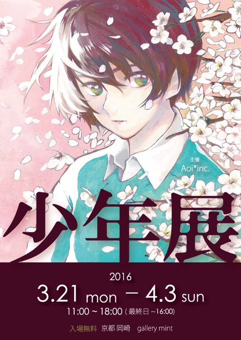 【展示会のお知らせ 】 3/21~4/4に京都で開催されるAoi*inc.様(@Aoi_inc00)主催の「少年展」へこの度参加させて頂く事となりました✶ 画像の世界の少年を引き連れる予定です、どうぞ宜しくお願いいたします✧