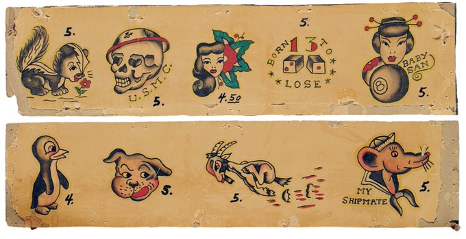 #FontSunday Images from the book: 'Vintage Tattoo Flash' – a collection of traditional American tattoo art from the last 100 years by tattooist and author Jonathan Shaw.
