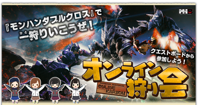 お知らせです!本日7月13日19時より『モンスターハンターダブルクロス』でのオンライン狩り会開催中です~!本日はモンハン部のクエストボードでクエスト同行者を募集しています!https://t.co/MmtG0dcUdp