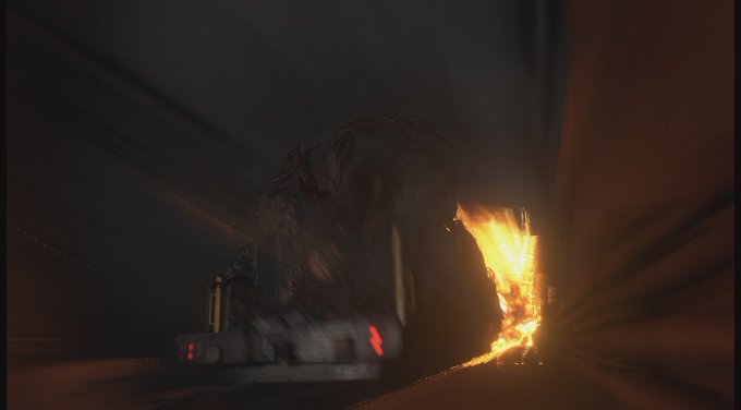 恐らく研究所の爆発で発生したものが煙突効果でトンネルに入り込んできたのでしょう。