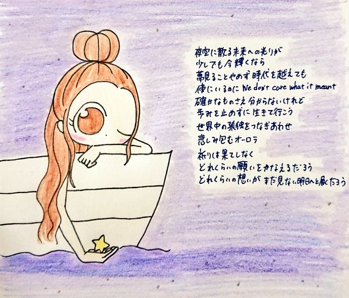おはようございます☀️ 悲しみがやさしさで包まれて、少しでも癒されますように…💙 今日も感謝の心を大切に素敵な1日を🌈🍀☺️💕 Song「冷たい海」×「悲しみはオーロラに」 #倉木麻衣 #Aimer #歌詞 #イラスト #女の子イラスト #イラスト好きな人と繋がりたい
