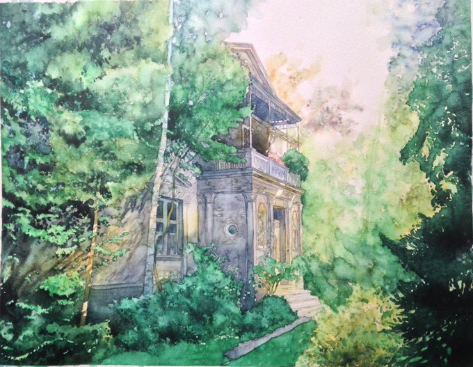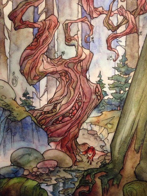 A bit more fantasy illustration practice! Black pen watercolor pencil and water.