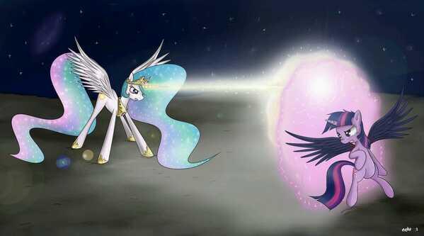 They're on the moon, and I can just imagine Woona in the background making adorable gun noises. *pew, pew!* :3 #Brony