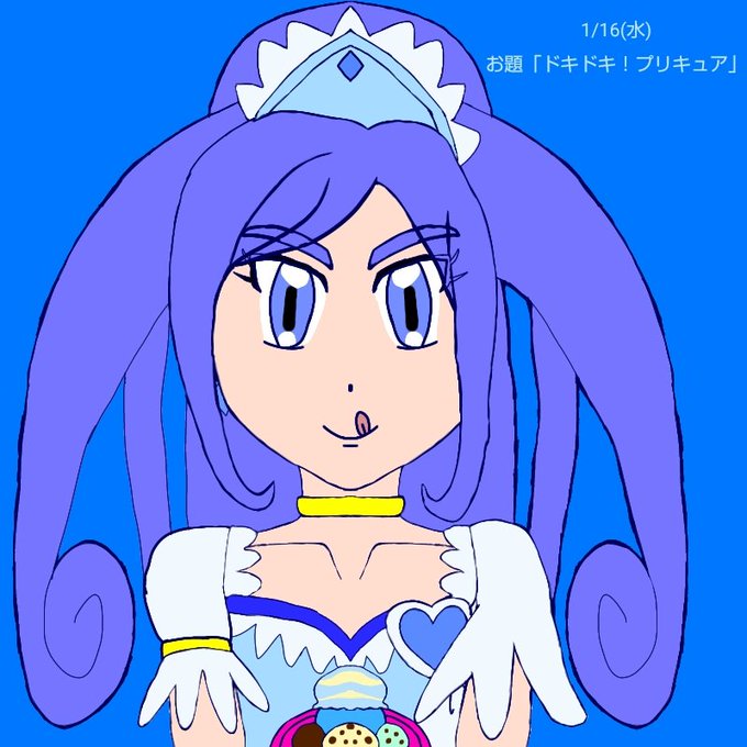 #プリキュア版深夜の真剣お絵描き60分一本勝負 遅刻。 一応夏なので、アイスとキュアダイヤモンドを💙💙💙