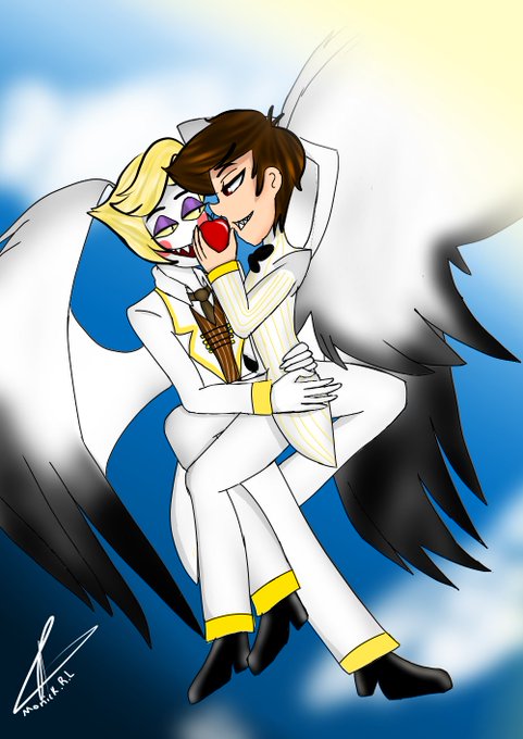 Perdonen la demora esque me faltaba un buen, quise poner a ambos que eran angeles, la verdad me encantó como quedó Alastor, es la primera vez que dibujo a Alastor humano