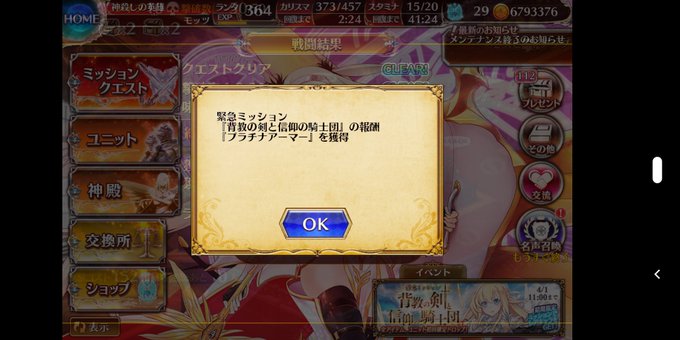 あれ、私だけかな?なんか画面遷移してもホーム画面映ってるんだけどアルティアさんスキだけど圧がすごい 四枚目戦闘リザルトだよ?