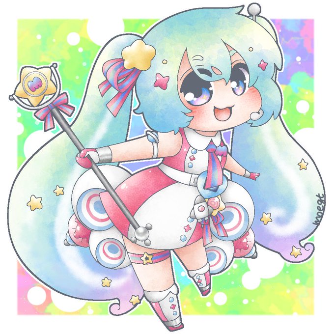 @otyakana ンですよねぇ…!マジミラミクちゃんだしなあ〜と悩みに悩んでます…🤔💭 どちらにせよ見返すと元イラストも普段よりかなり淡いので、もうちっとばかし色調整出来るかやってみます(・ε・)