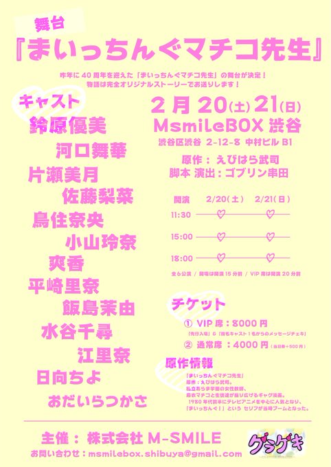 配信公演「まいっちんぐマチコ先生」開催決定✨