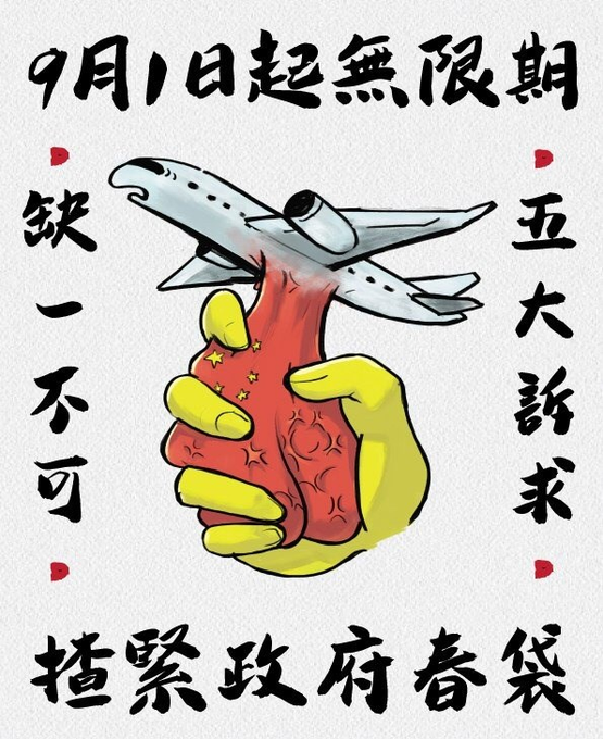 #Chinazi Captions: All five demands must be met. Squeeze the balls of the government hard! #AntiELAB #HongkongProtests #StandwithHK