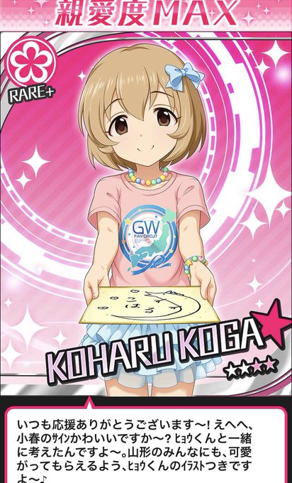 【古賀小春私服鑑定】由愛ちゃんの伸び盛りの景色特訓前で着てるピンク色シャツはファンサーキットの流用ではない。他2名と違い隠れてる部分に文字スペースの余裕はないと思われるため、おそらく絵だけ。描かれてるのは…ウサギ?