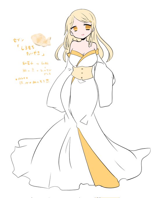 最初はファミ……の四角いプリンにしようと思ってたんだけ上手くかけずに迷走した末シンプルめに 和装マーメイドドレスお気に入りです!!