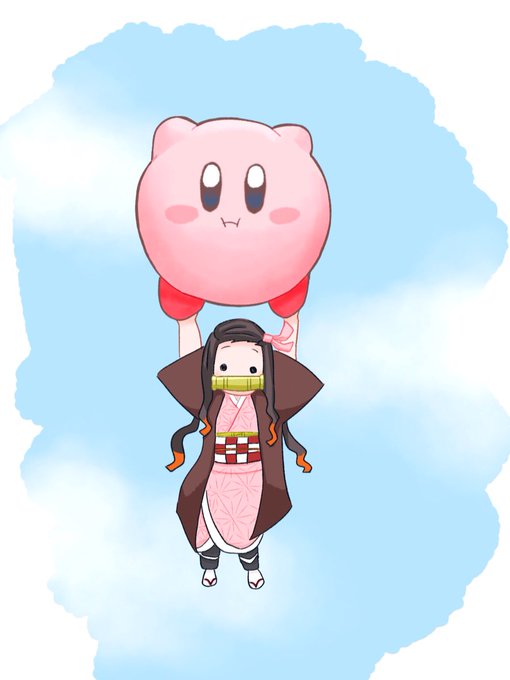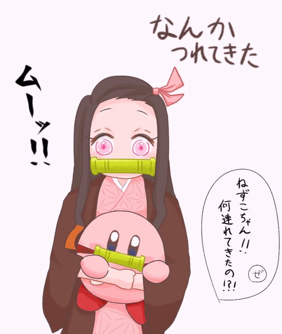 ※クロスオーバー(既出のネタかもしれない) かわいくて強い2人。 カービィ×ねずこ #鬼滅の刃イラスト #カービィ #竈門禰豆子
