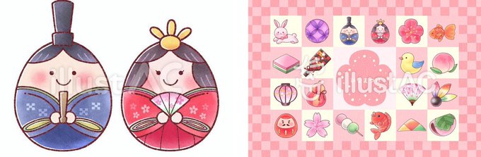 もう夕方になってしまいましたが、ひな祭り関連のイラストを公開中です☺️よろしければご覧になってください✨
