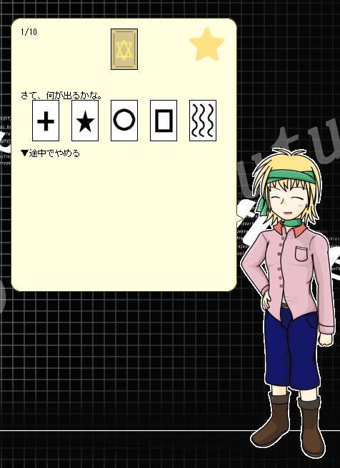 「希望の光」 …帰る家を間違えたら、隣人が魔法使いだった件について。 人の良い彼は、いつ訪れても嫌な顔せずに(?)あなたの相手をしてくれます。画像はミニゲームのESPカードなアレ。 #4月なのでフォロワーさんに自ゴ紹介しようぜ