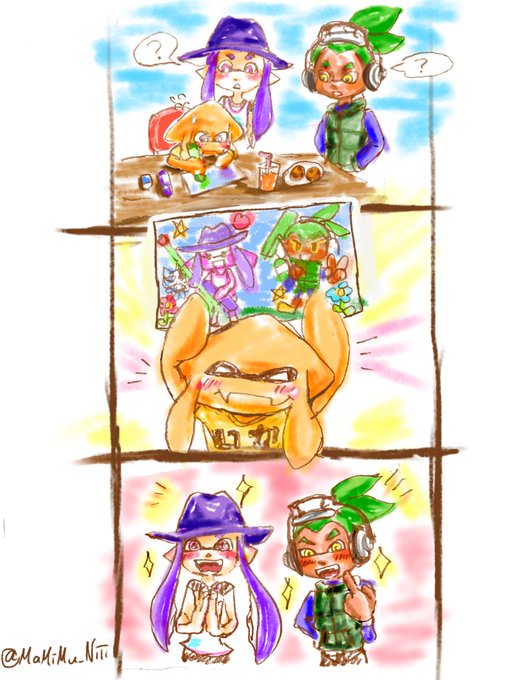 #3周年だし1番最初に描いたイカ絵を晒す 色つけたものはこの辺だァ!!!!!