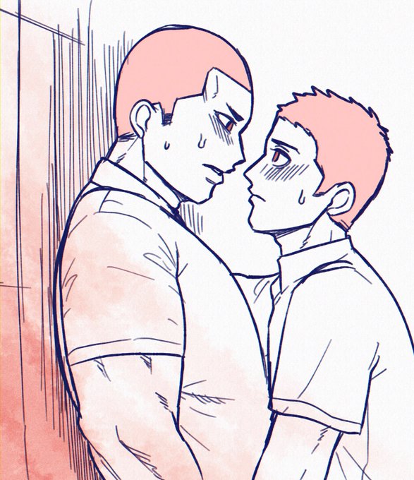 原稿終わったので久しぶりにショート漫画の創作BL描いてる😃 坊主同士なのは100%作者の趣味です