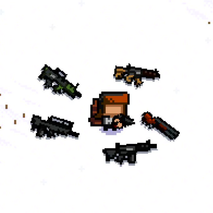 A few of the 2020 updated guns in Rogue North. It was about time for a change since my gun drawing skills have improved a bit over the last 2 years I've been working on this game. Ill make a nice video showing off all the new animations when I finish them #pixelart#indiedev