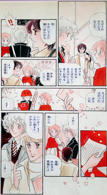 #絶版マンガ図書館 <花詩集><ラブストリート><わたしのお気に入り>を公開中。毎日カラー原画を1枚UPしてます。本日はラブストリート5巻、檜皮(ひはだ)の章、本文4P目。二色カラー
