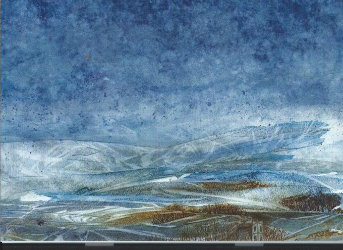 A water-colourist inspired by the quality of the light in the Eden Valley & on the Solway coast, Anna McKay enjoys experimenting with texture & colour, painting with watercolour, salt, sand, ink & pencils.