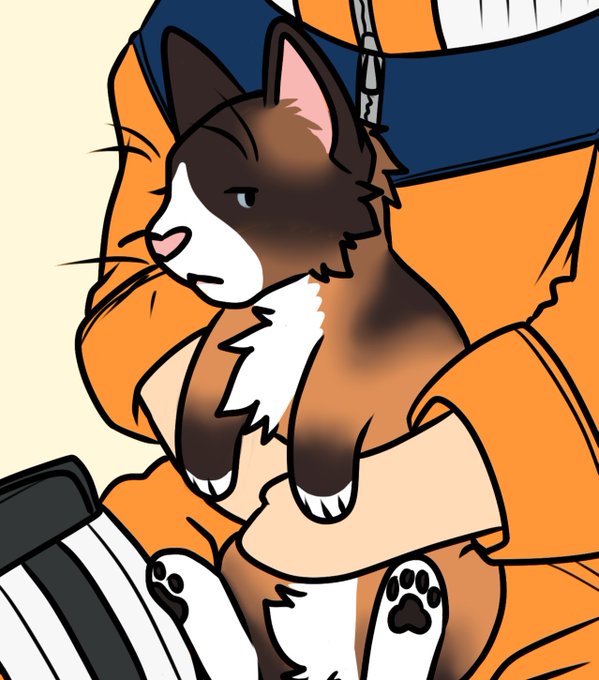 drew @ashunotora as a chibi cosplaying Naruto, with his cat Shinobi 🥺