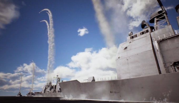 飛行甲板でのデッキオペに支障が無いようにやはり左舷側のアレイは無いヒュウガ(代わりのアレイらしきものがある?)。