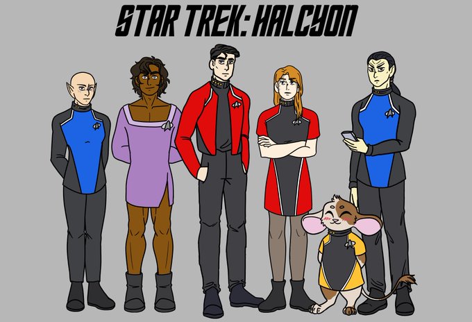One of my players in my Star Trek game wanted to play a mouse person, and who am I to deny him? Obsessed with the concept of a Chief of Security who is so tiny and cute and also incredibly trigger happy so of course i had to draw him 🐹🥺