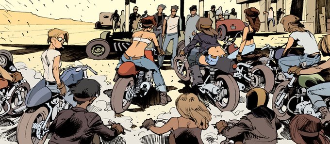 In STREAMLINER #2, Billy Joe & Cristal figure out a working alliance for the duration of the race, but things change when a gang of "two-wheelers" show up on their motorcycles. #comics #hotrods