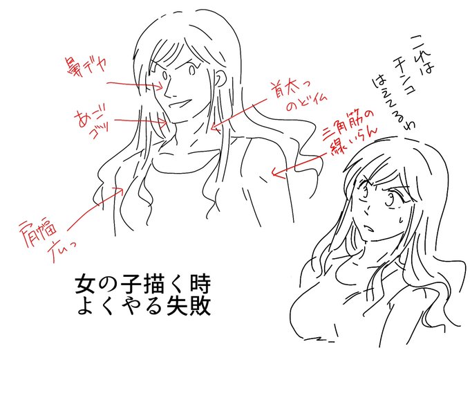 ヘタやる前からずっと三次元のゴツイ男達を描いてきたしそっちの方が描きやすいので、女の子キャラもうっかりごつくしてしまい描き直すことがよくある とくに輪郭は本当によくやる……
