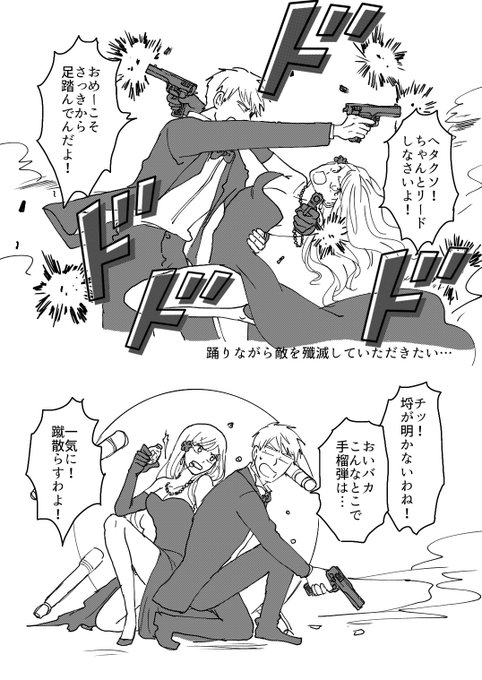喧嘩しながら任務をこなすギルエリ 二枚目は再掲 身体能力高いカプはこういうのができるところが良い… #ギルエリ