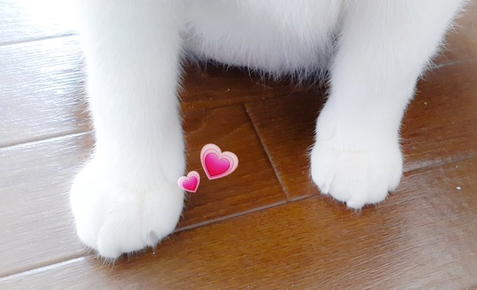 うちの愛猫と ほたほたの美味しそうなおててをそえて
