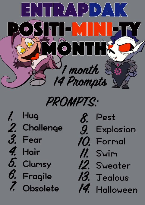 In response to moving Entrapdak Positivity Month to coincide with Entrapta & Hordak’s birthdays there will be a 14 prompt event in Oct 2022. This for any social platforms and here is the prompt list #entrapdak #spop #shera #entrapta #hordak