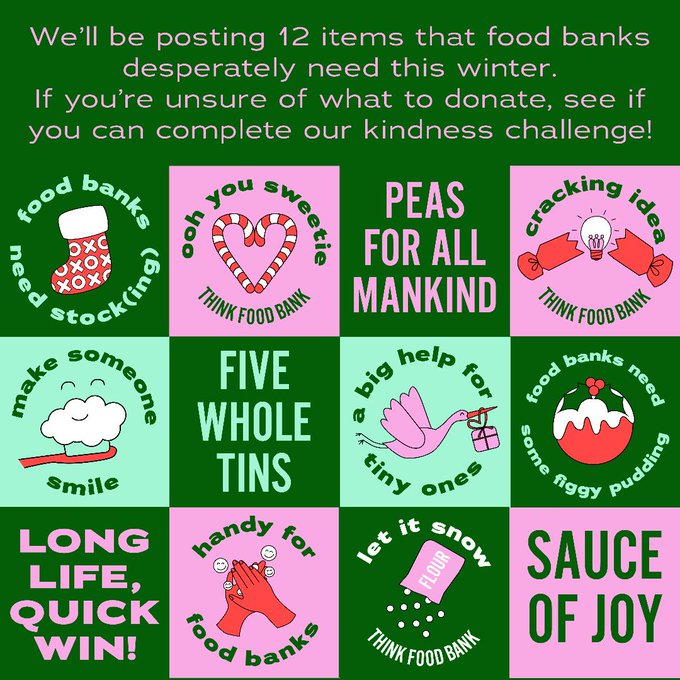 Want to do more this christmas but aren't quite sure how to help? Join @thinkfoodbank's 12 days of kindness challenge! Either donate all 12 items or join us as a (wait for it) shelf elf! to spread the love throughout supermarkets! 🎄💝 #thinkfoodbank #12daysofkindness