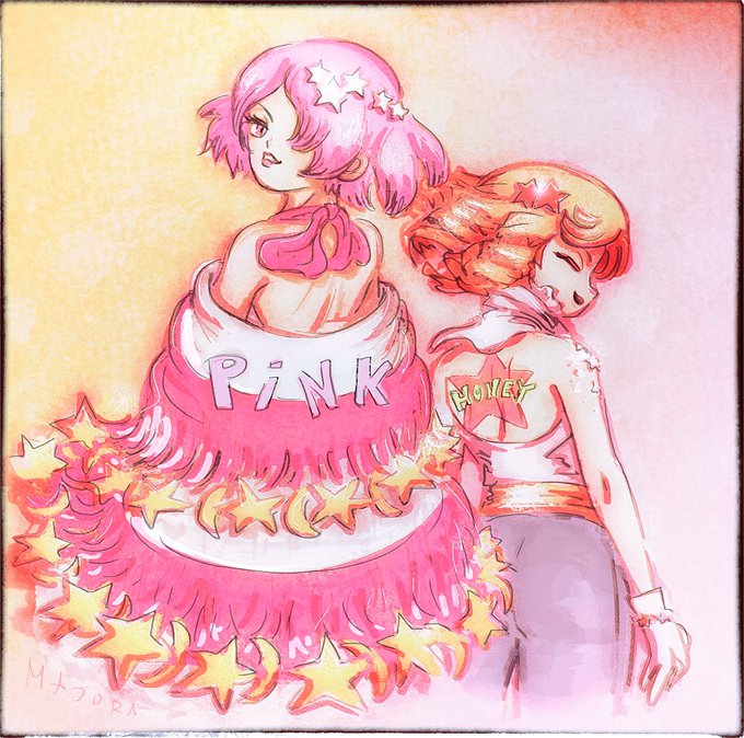 @dcstfslashweek: Luna and Francois for the "pink" and "honey" prompts (I used references again but changed their designs quite a bit)! 🌙⭐️🌟