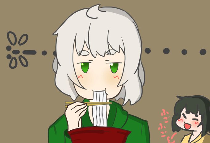 うどんを食べるしろさん描きました
