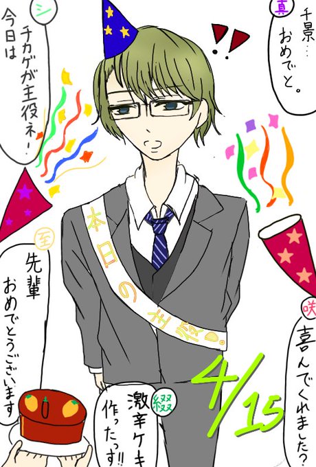 #卯木千景誕生祭2020 頑張った…3時間で描いた…。 千景さん!!誕生日おめでと!! 春組みんなから祝われる千景さん描いた…!!