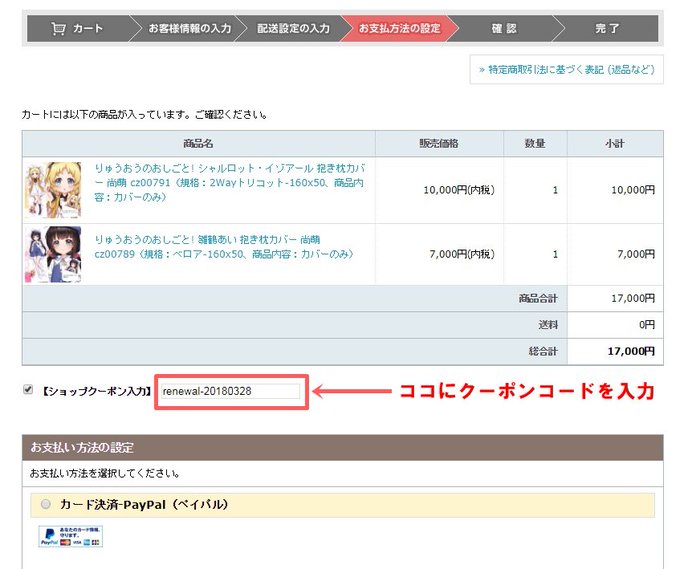 クーポンコード: renewal-20180328