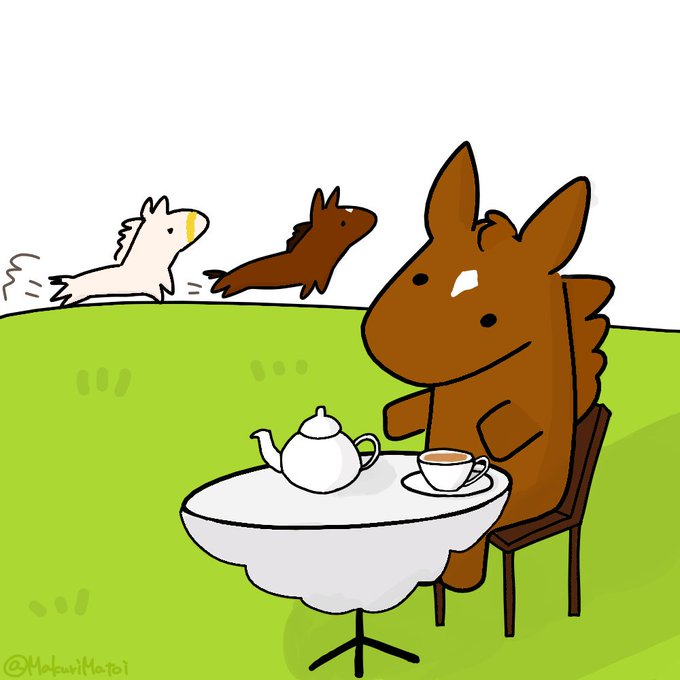 ティーハーフはただいまティーでハーフタイム中……… #まくりのうま絵 #高松宮記念