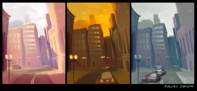 I have some paintings that I haven't posted ^_^. Here's a time of day/color study I did!