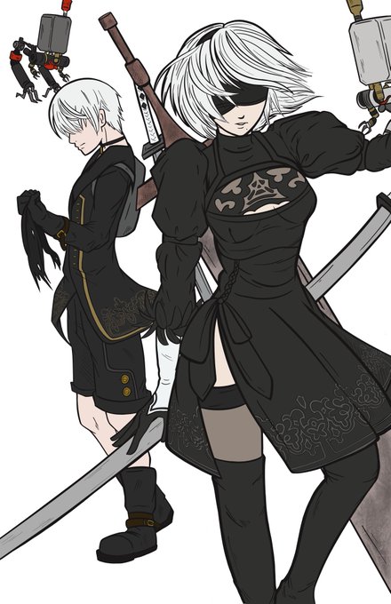 Here’s some progress of my Nier piece. The background is going to be a paaaain. #NieRAutomata #SquareEnix #gaming #drawings #artist