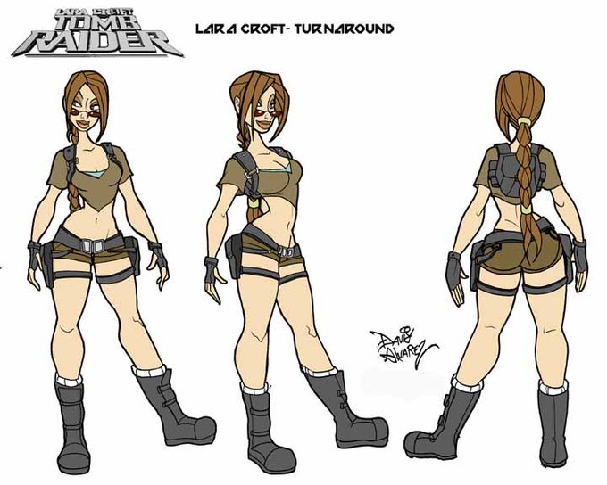 Concept art and screenshots of Lara Croft from Re\Visioned: Tomb Raider - Revenge of the Aztec Mummy.