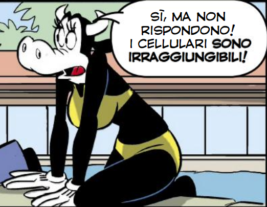 Comic panels of Clarabelle Cow from Topolino, Disney Don Quixote, and Mickey Mouse: The Quest For the Missing Memories, as designed by Claudio Sciarrone.