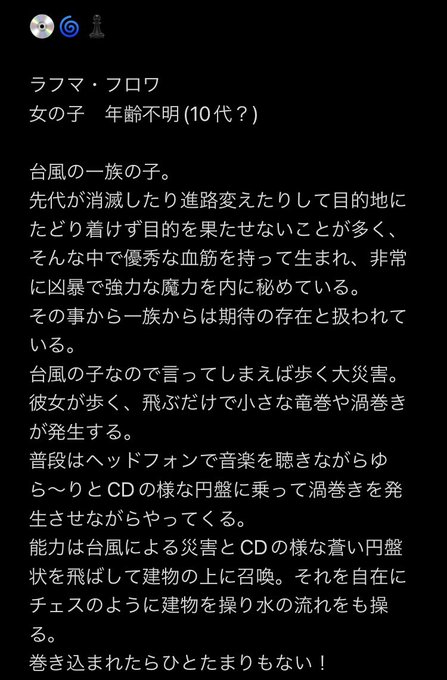 できました〜2人目! 💿🌀♟ "ラフマ・フロワ" 『お邪魔しますなのですよ〜。』 『止められないのですよ〜。』 #なぽぽぽ絵 #フォロワーさんから絵文字3つもらってキャラデザする
