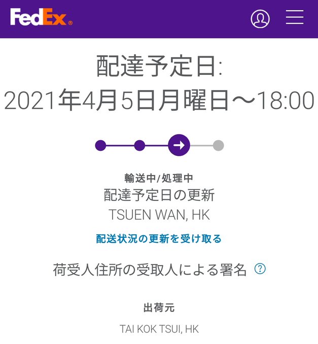 香港より連休前最後の出荷完了