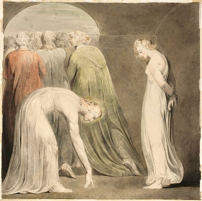 姦通の女を殺せという学者に「罪のない者が石を投げよ」と言い、皆が去ると仰いました