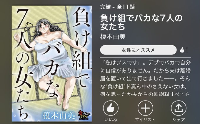 オススメは、『負け組でバカな7人の女たち』です👀 負け組”ド真ん中のさえない女が、夫からの慰謝料すべてを『整形手術』につぎ込む...!?💥