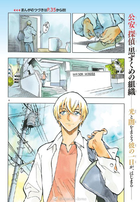 Pages couleurs du premier chapitre de Détective Conan - Zero no Tea Time de Takahiro Arai dans le Shônen Sunday #24.
