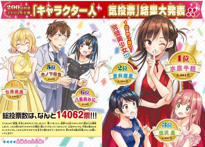 Se revelaron los resultados de la encuesta de popularidad de los personajes del manga 'Kanojo, Okarishimasu', Chizuru ocupa el primer lugar, seguida de Ruka en segundo y Sumo en tercero ¿Qué les parece?