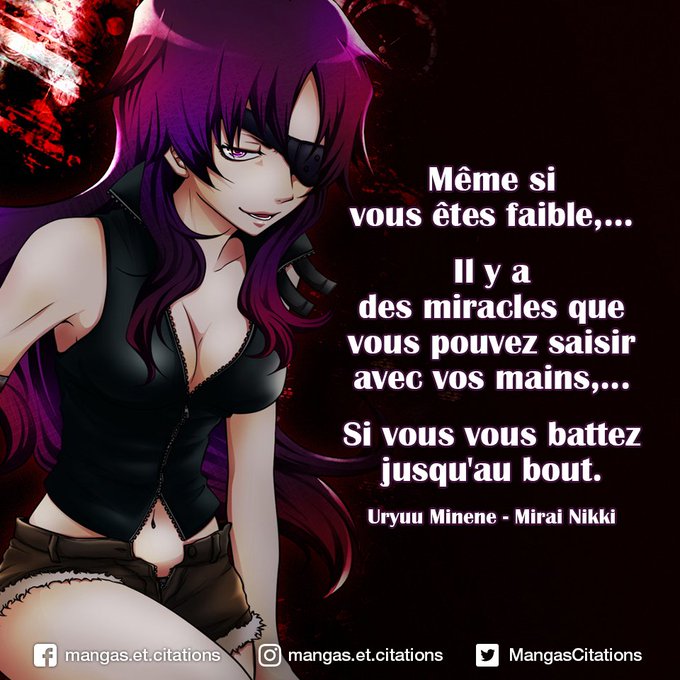 Même si vous êtes faible, il y a des miracles que vous pouvez saisir avec vos mains, si vous vous battez jusqu'au bout. #Uryuu #Minene - #Mirai #Nikki