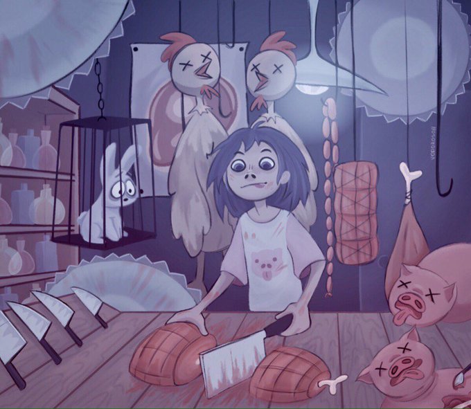 It's always tough for Agatha to convince her animals that being transformed into delicious meat is cool, and sandor_zankat pictures it like this on today's #FanArtFriday: