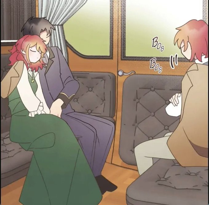 Since they were tired, they fell asleep in the carriage. Fl's brother kick the ml's legs so he woke up and as he saw the fl's uncomfy position, he adjusted it so she'll be able to sleep peacefully awww🥹💗